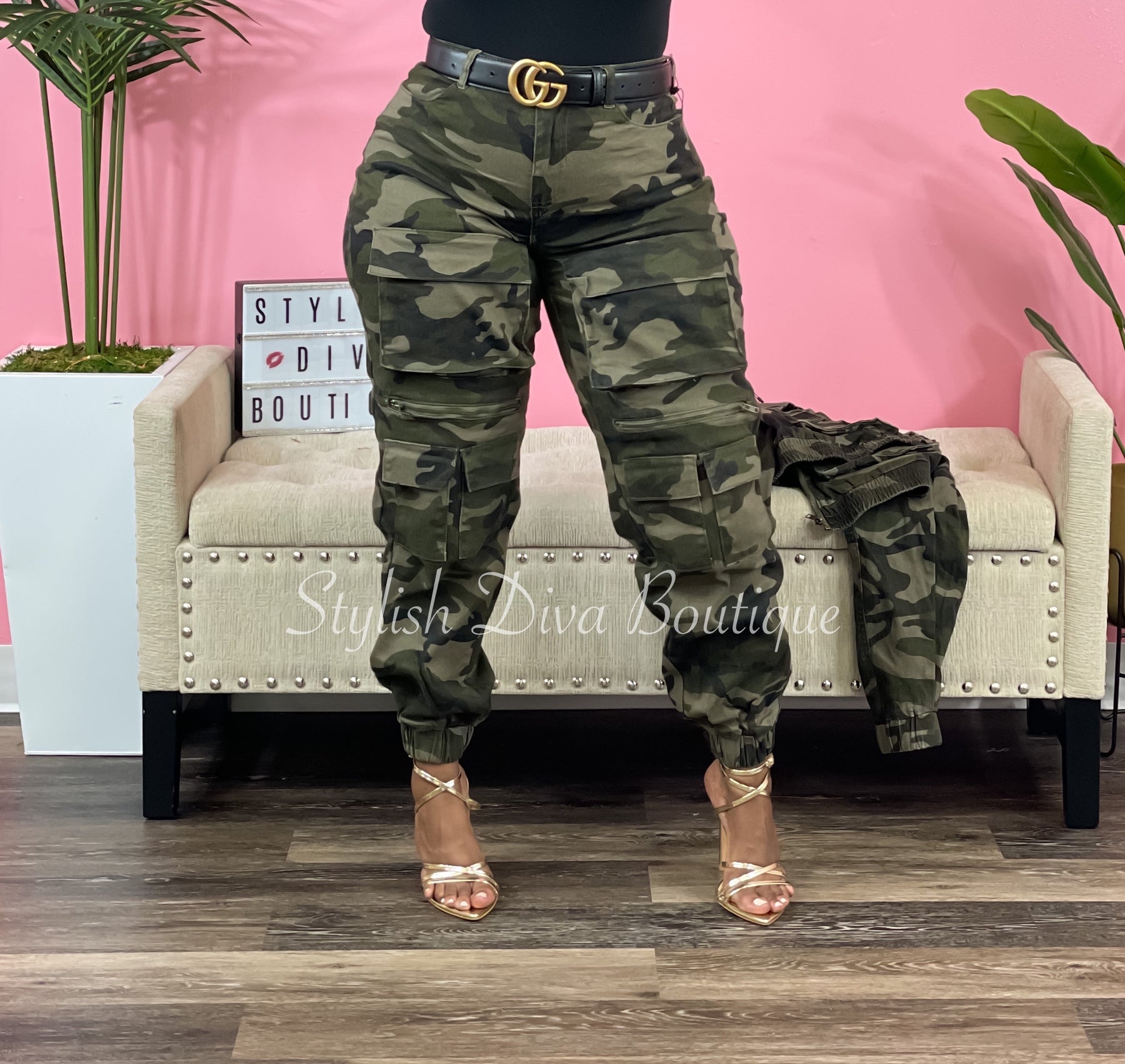 Introducing Ms. Commander Camo Joggers! With a high-waisted fit, button waist closure, edgy zipper trim pockets, and elastic banded hems, these stylish and comfy joggers are sure to make a statement! Get your own now, up to 3XL!