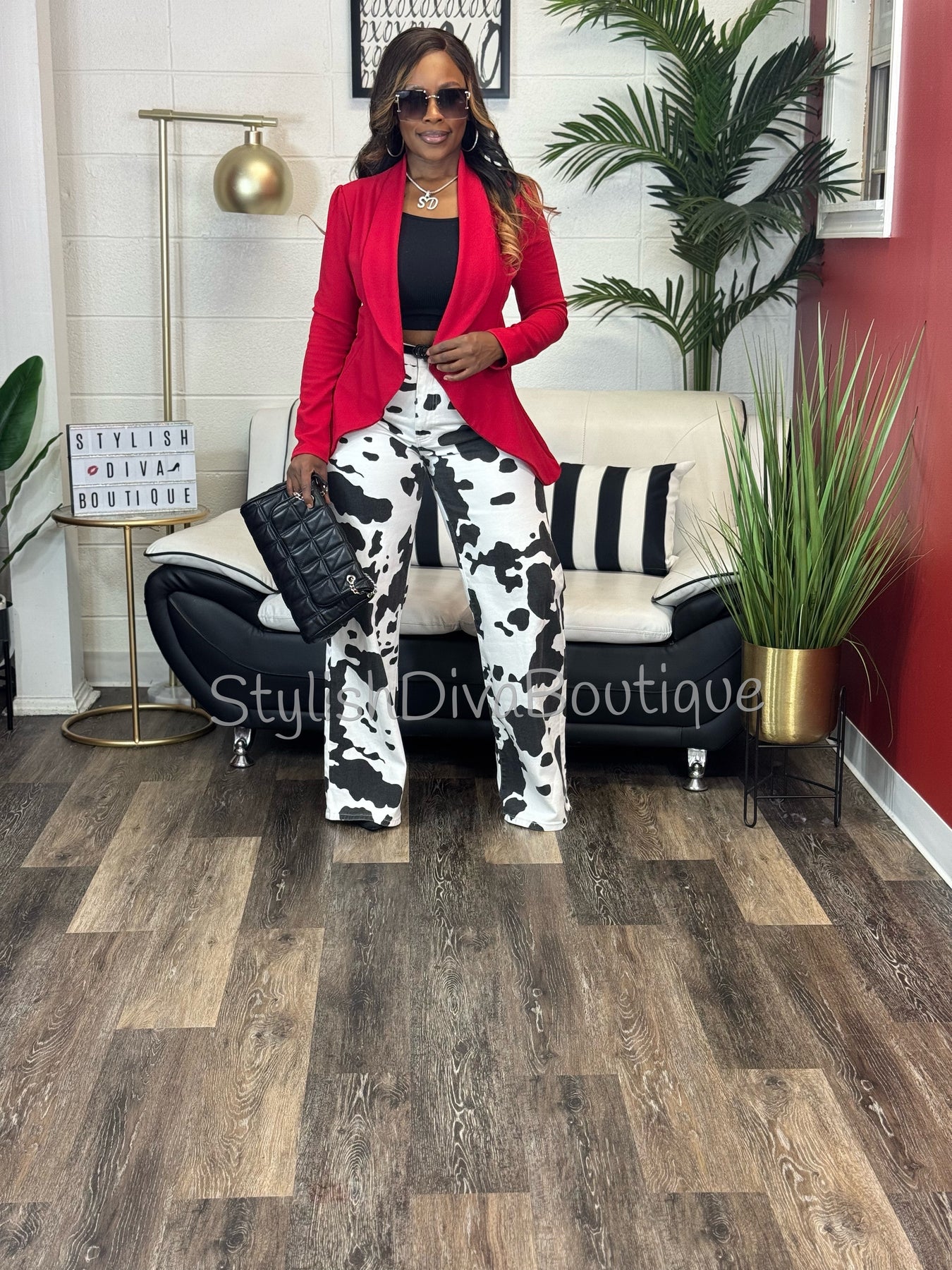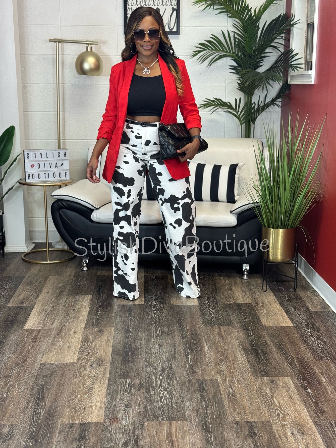 • Black & white cow print design
