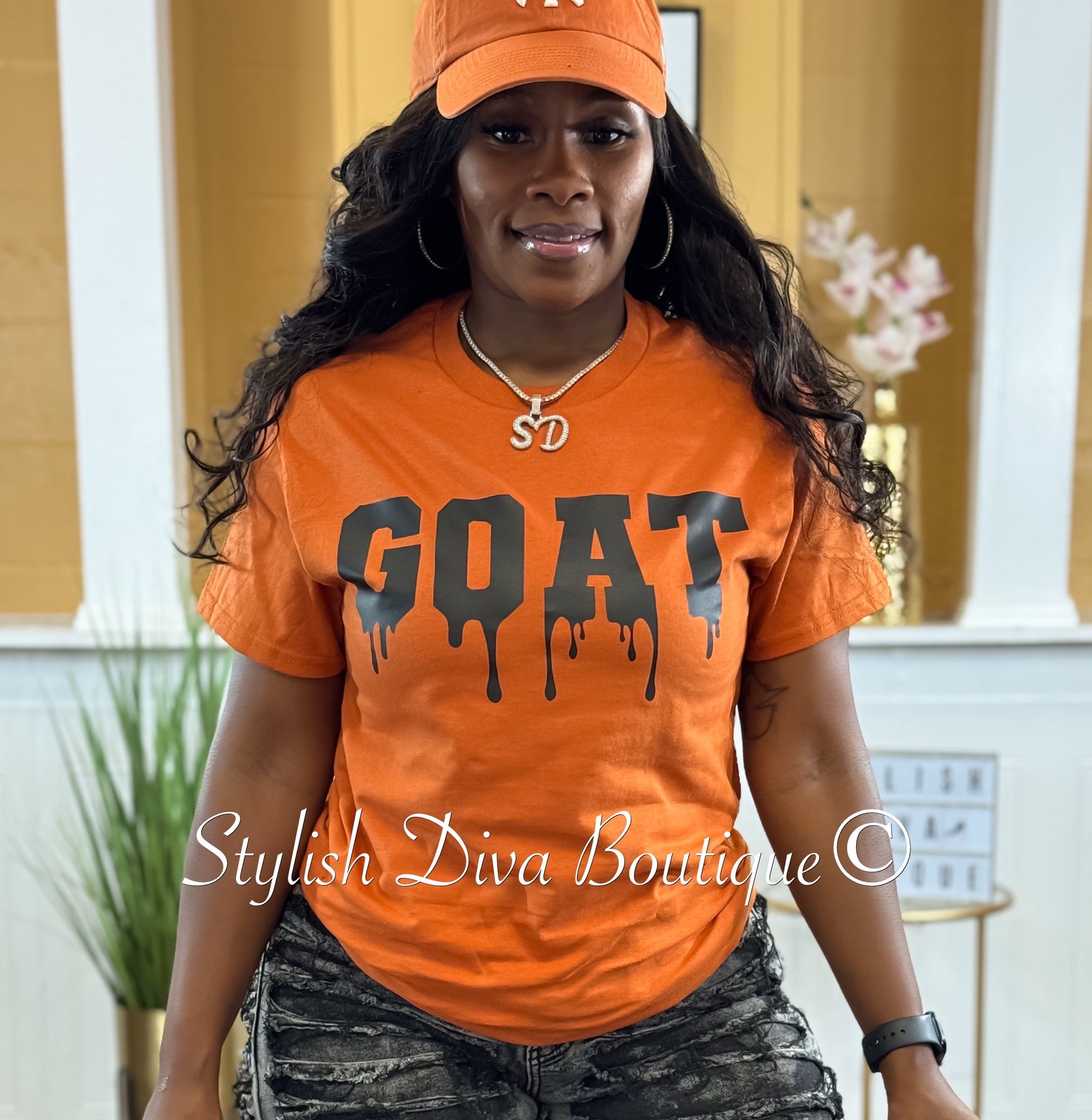 GOAT Dripping T-Shirt (Dark Orange/Black Print)