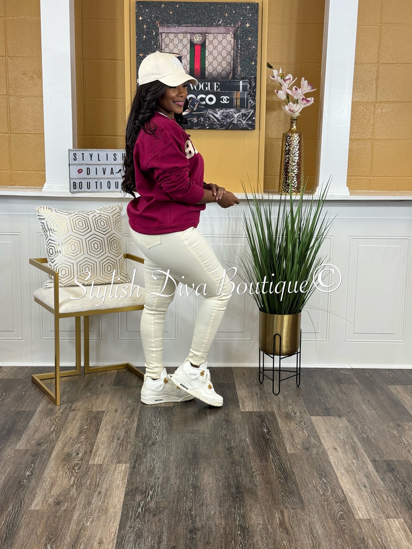 Looking for a pair of jeans that will hug your curves, enhance your figure and make you stand out in the crowd? Look no further than our So Curvy Stretch Skinny Jeans! Made with super stretch fabric, these jeans are designed to fit like a glove and move with you throughout the day. The skinny cut creates a flattering silhouette while the high waist provides added support and comfort. And let's not forget about the stunning cream color. Don't just settle for any old pair of jeans – elevate your style game with So Curvy!