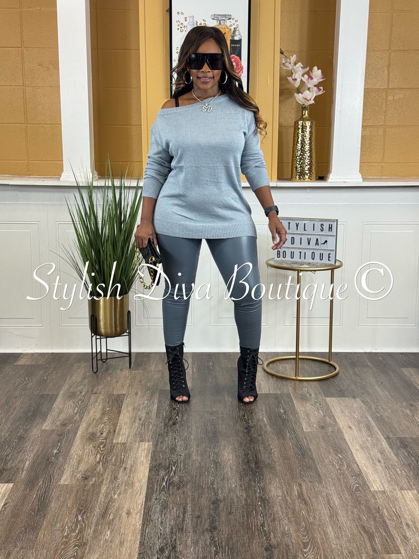 Bobbi Off Shoulder Everyday Sweater (Denim Blue)