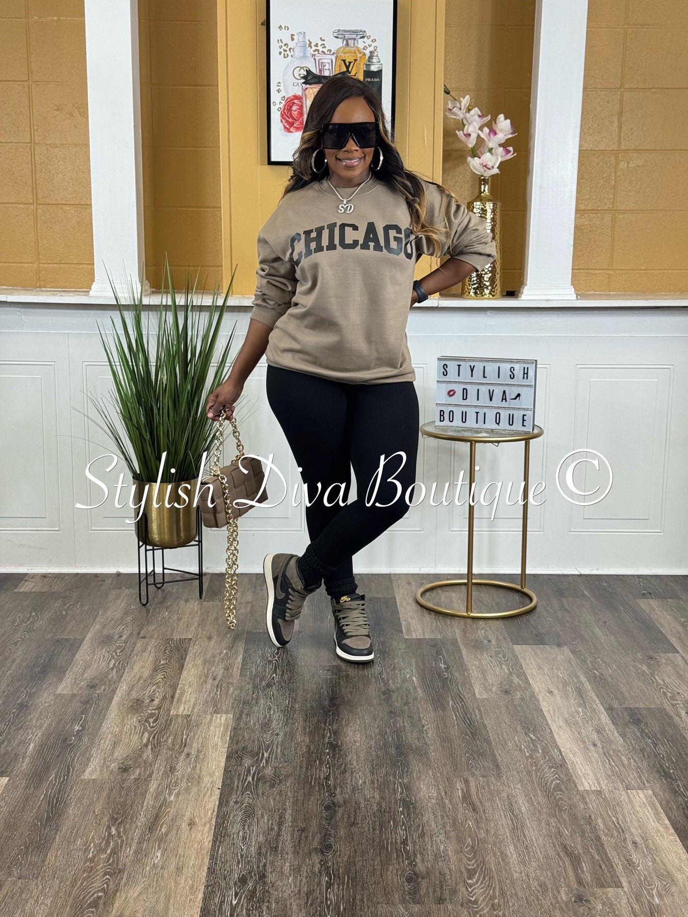 Chicago Print Sweatshirt Only up to 3XL (Mocha/Black Print)