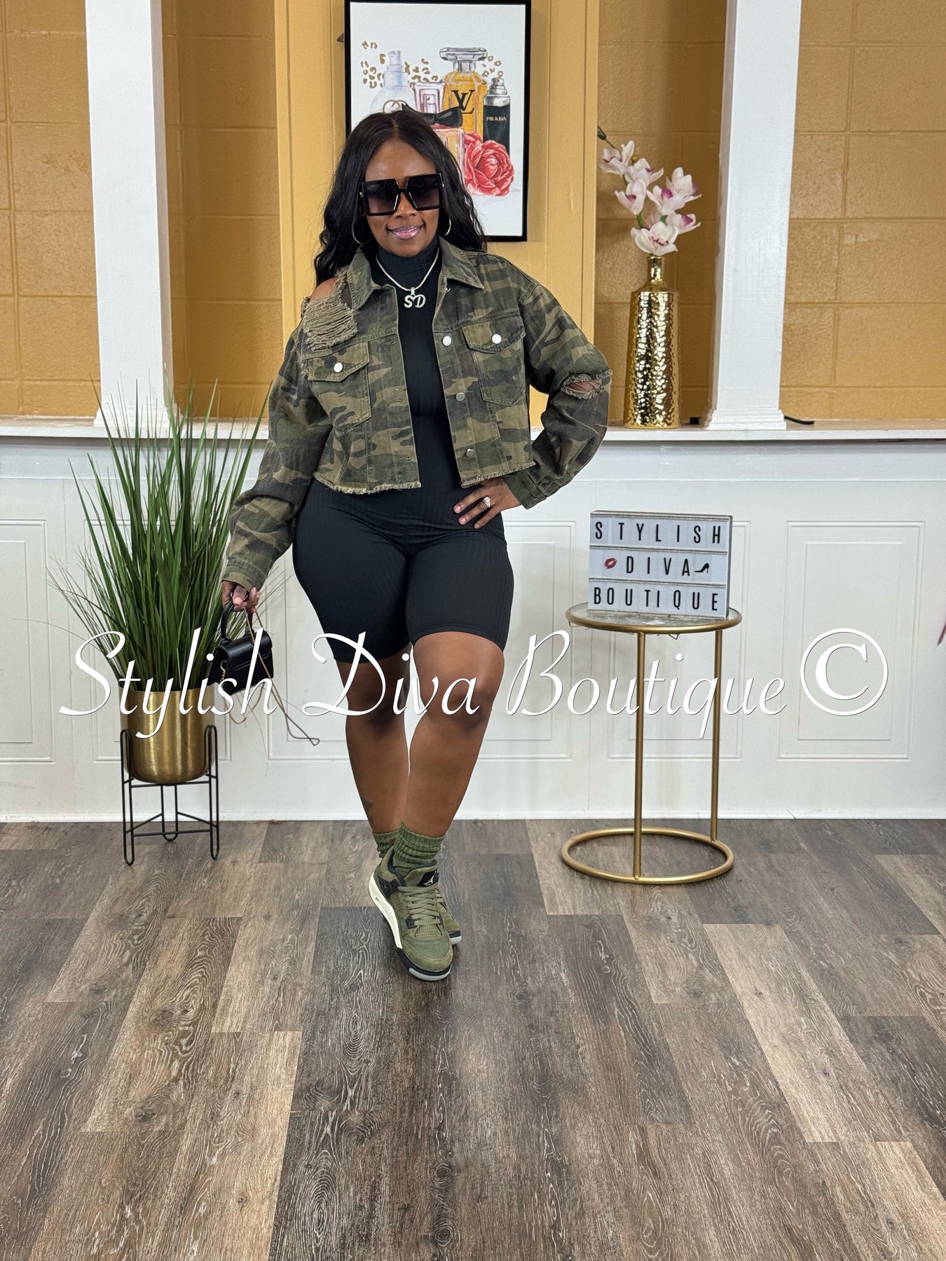 Destiny Distressed Cropped Denim Jacket (Camo Denim)