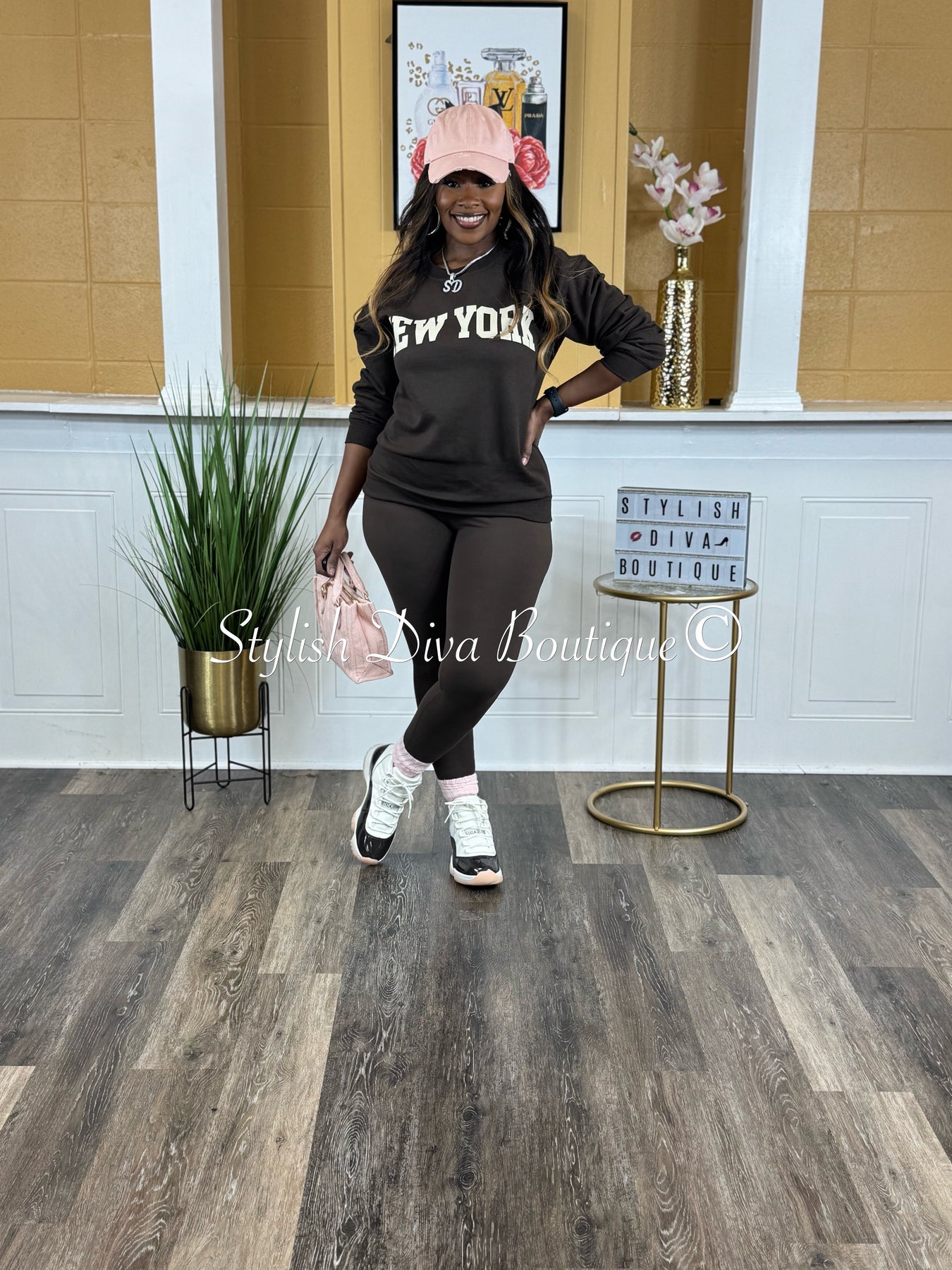 New York Sweatshirt Only up to 3XL (Chocolate/Cream Print)