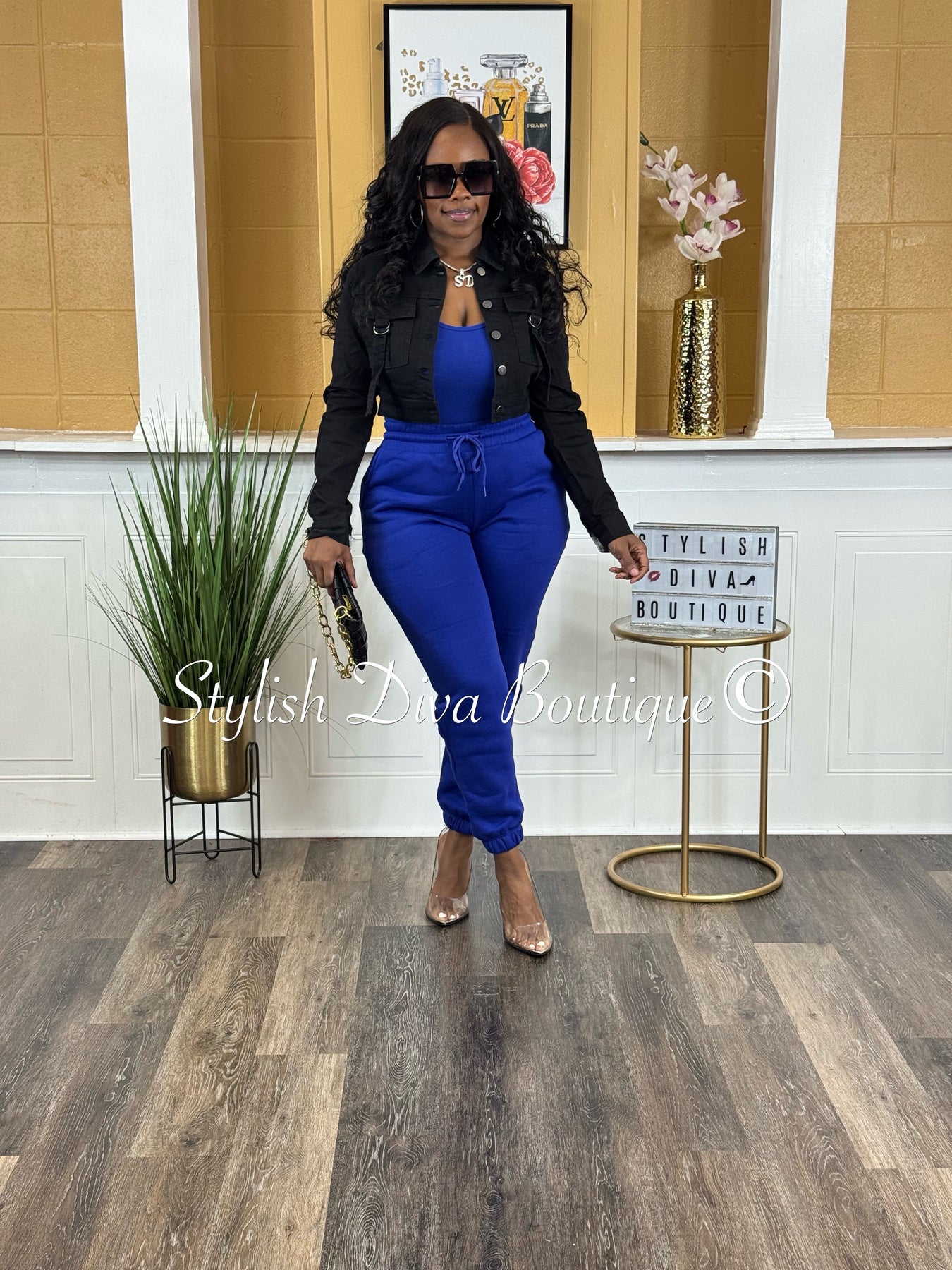 Elevate your casual wardrobe with the Onyx Vibes Cropped Denim Jacket in black. Featuring a button-front closure and a stylish utility pocket with strap, this jacket combines functionality with edgy style. Its cropped length and long sleeves create a flattering silhouette that’s perfect for layering. Designed in size S with a 19-inch chest and 15.75-inch length, it offers a comfortable, modern fit that complements any look. Add versatility and a bold touch to your outfits with this must-have denim jacket.