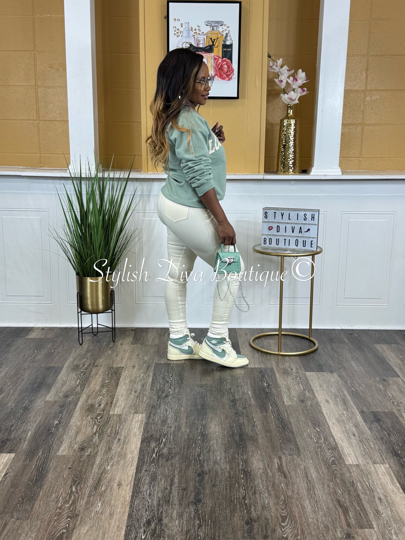 Looking for a pair of jeans that will hug your curves, enhance your figure and make you stand out in the crowd? Look no further than our So Curvy Stretch Skinny Jeans! Made with super stretch fabric, these jeans are designed to fit like a glove and move with you throughout the day. The skinny cut creates a flattering silhouette while the high waist provides added support and comfort. And let's not forget about the stunning cream color. Don't just settle for any old pair of jeans – elevate your style game with So Curvy!