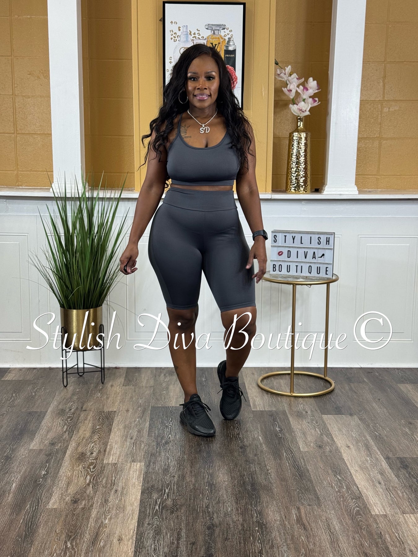 Sporty Girl 4 Piece Active Set (Charcoal Grey)